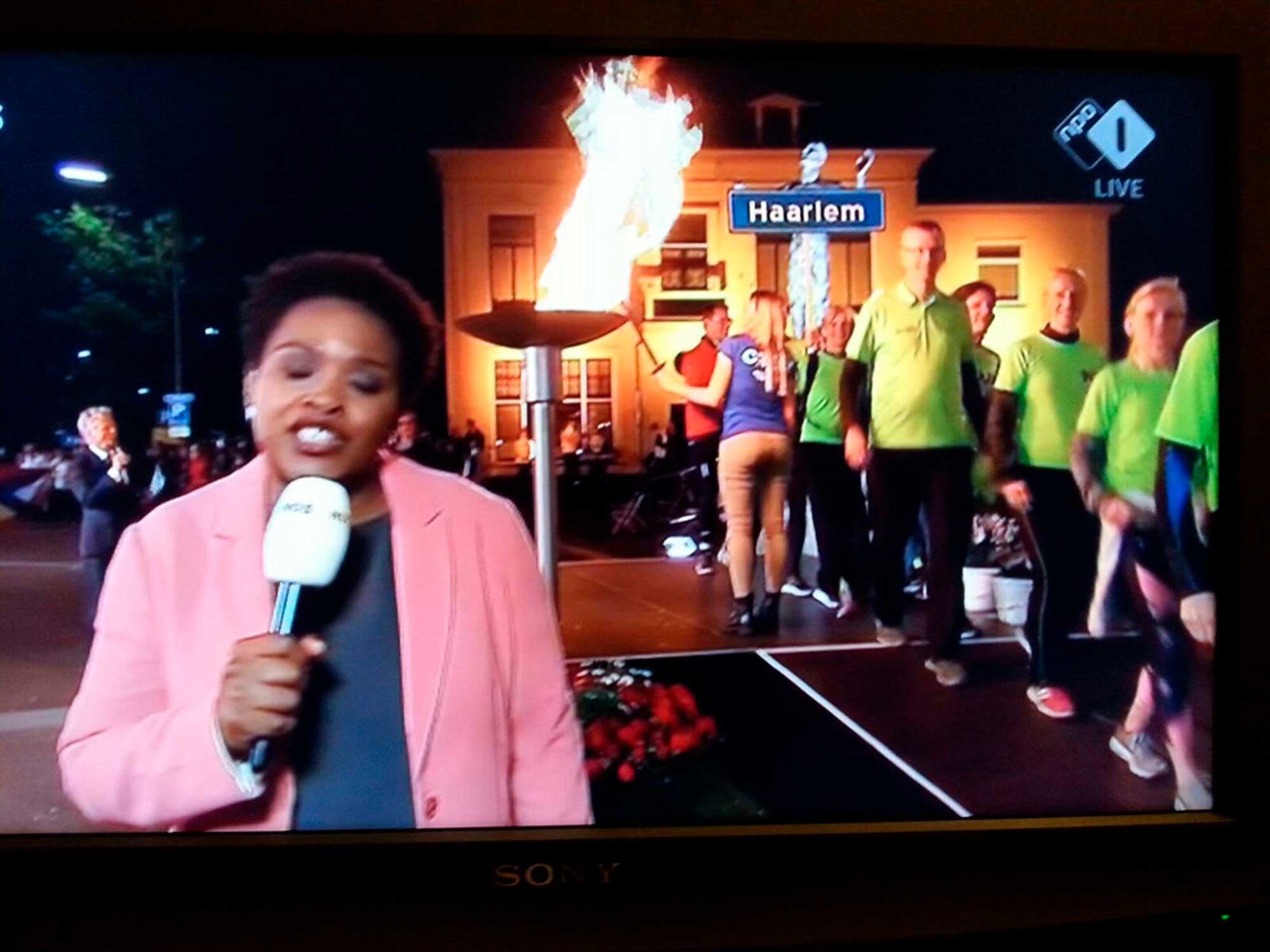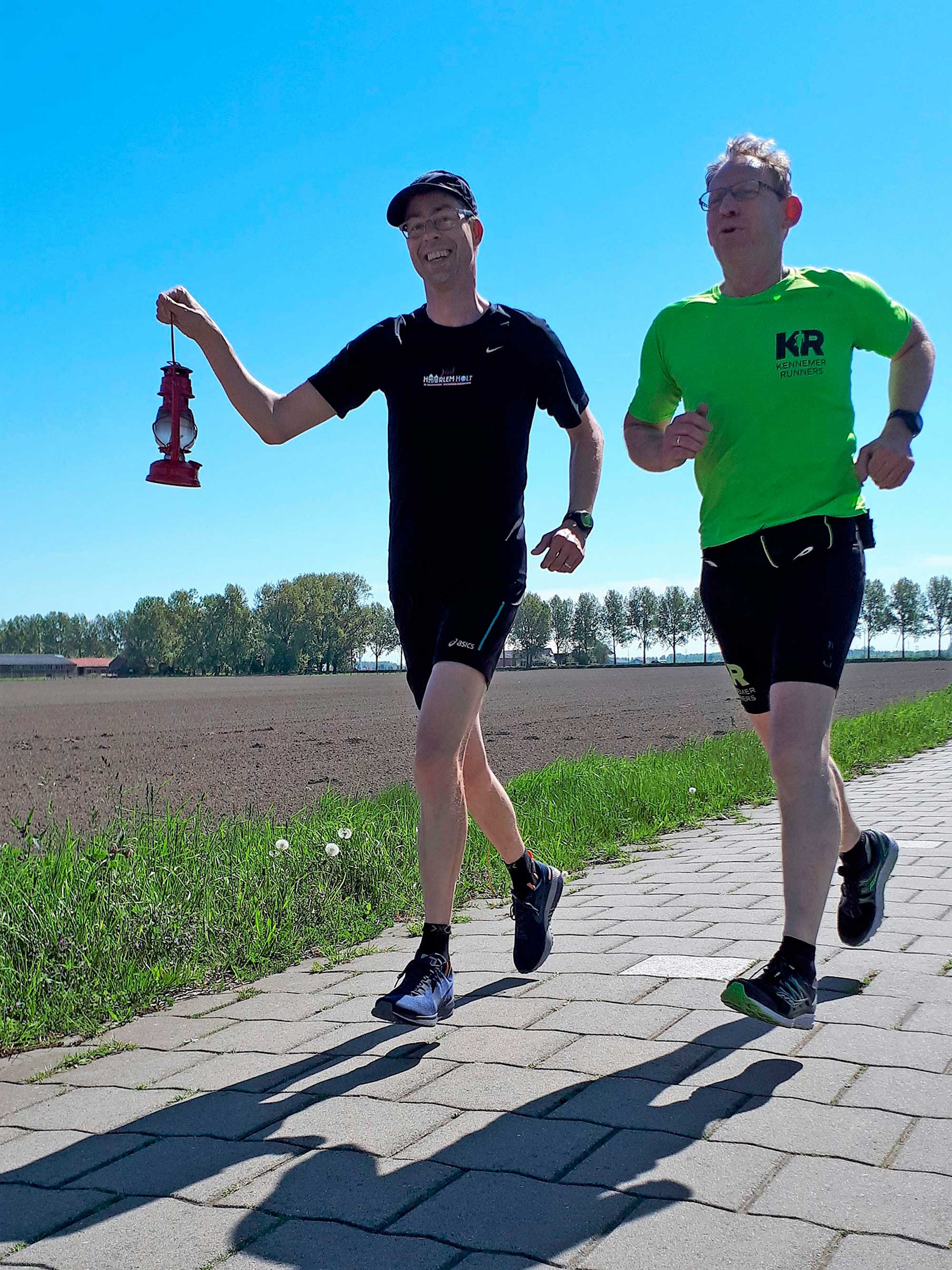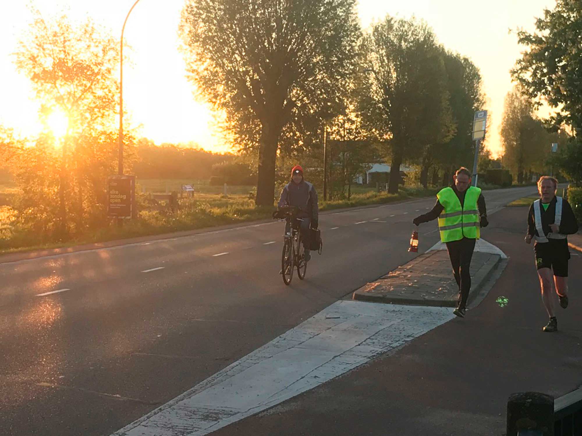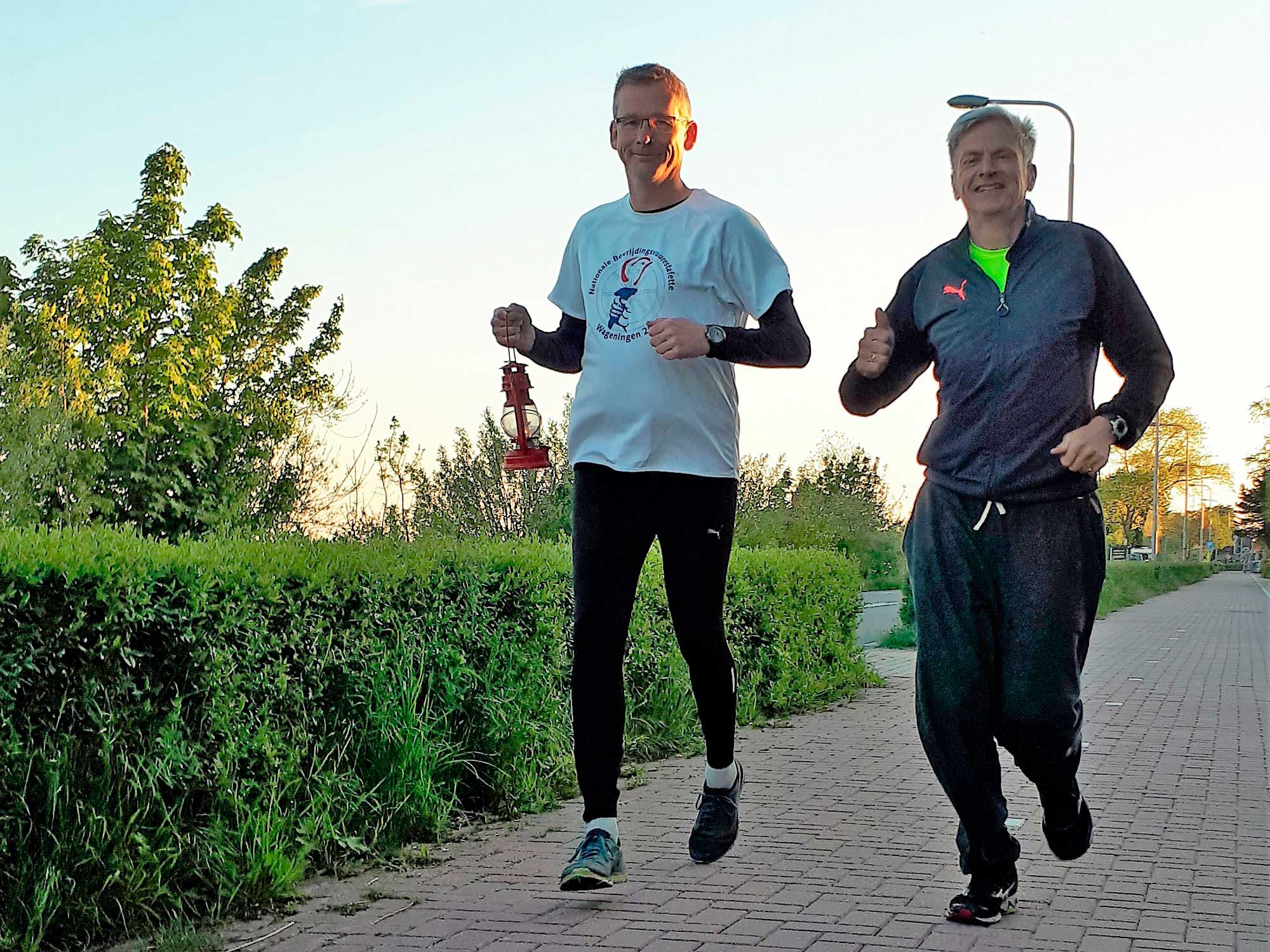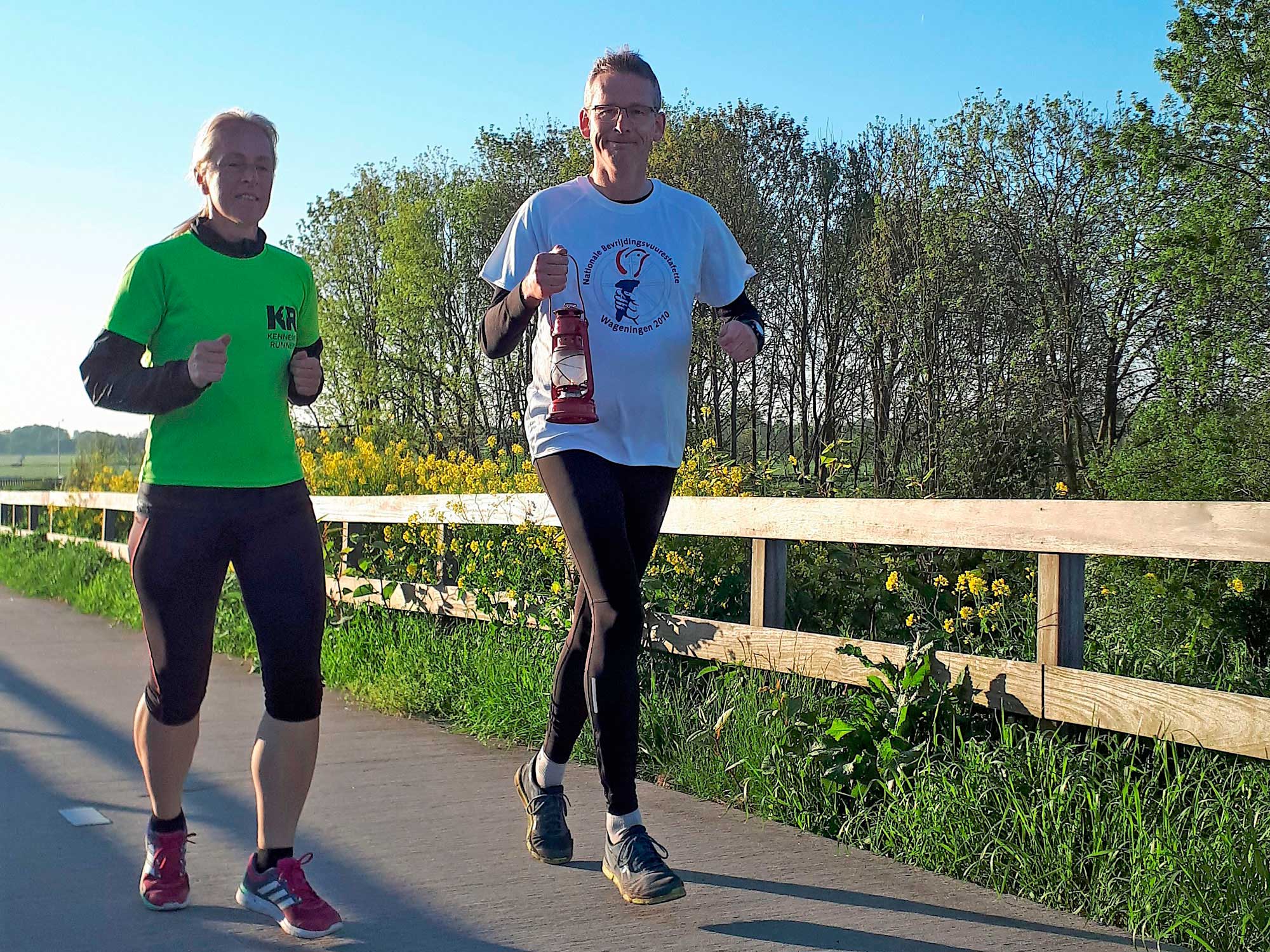 5 Mei, 00:18:00 uur, vertrokken we vanuit Wageningen met een vlammetje, dat naar het podium van Bevrijdingspop gebracht moest worden. Om daar het festival officieel te openen met het ontsteken van het Bevrijdingsvuur. Het is gelukt, het vlammetje werd overgebracht van de toorts naar een stormlampje. Daar konden we prima mee hardlopen. Om beurten een kilometer met het lampje, zo komen we er wel. ’s Nachts hardlopend door Nederland, een aanrader. Heerlijk rustig en prachtig bij het opkomen van de zon.